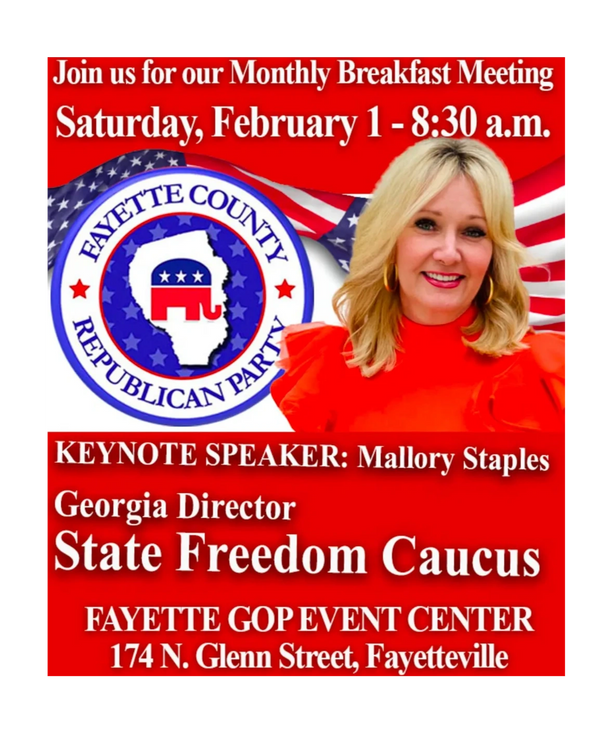 It is certainly a Happy New Year for Republicans, so be sure to join us in the New Year to take part in making Trump's "Golden Age" a reality in Washington D.C., Georgia, and Fayette County. In January, don't miss the opportunity to hear from our long-standing and newly re-elected Representative.
